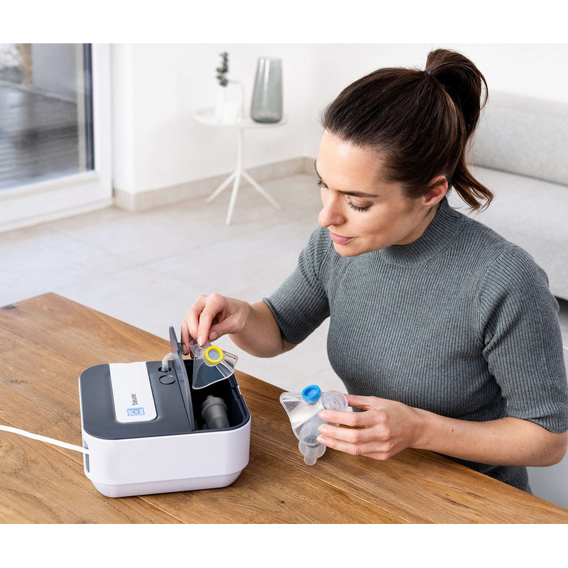 Beurer IH 28 Pro je moderní inhalátor vybavený kompresorovou technologií stlačeného vzduchu a rozsáhlou sadou nebulizátoru, která nabízí kompletní řešení pro uklidňující inhalaci. Tento inhalátor je navržen pro dospělé i děti a poskytuje komfortní a efektivní léčbu při onemocněních dýchacích cest, astmatu nebo nachlazení.